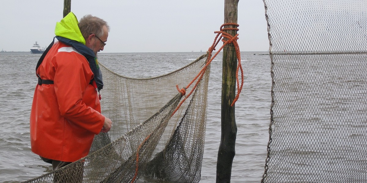 Ever since I started working as a lab technician at NIOZ in 1972, and later as a research assistant, one of my tasks was to monitor the fyke catches. Up until that point, the fishing company, who had done it for decades, were still operating. The nets were operative from April to November, and the edible fish were sold at the junction on the main road. The fyke was emptied daily by the fishermen and the catch was counted and recorded. Occasionally I went to help, but it took a long time before I was acknowledged as a fully-fledged fisherman.