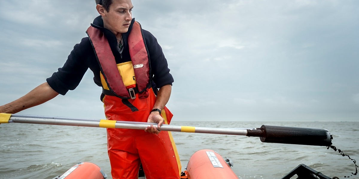 The sample locations are visited by boat or on foot. During fieldwork, samples are taken to assess the macrofauna on the surface or in the upper sediment layer of the tidal flats. The findings offer valuable information about the availability of benthic species as food resource for birds and fish.