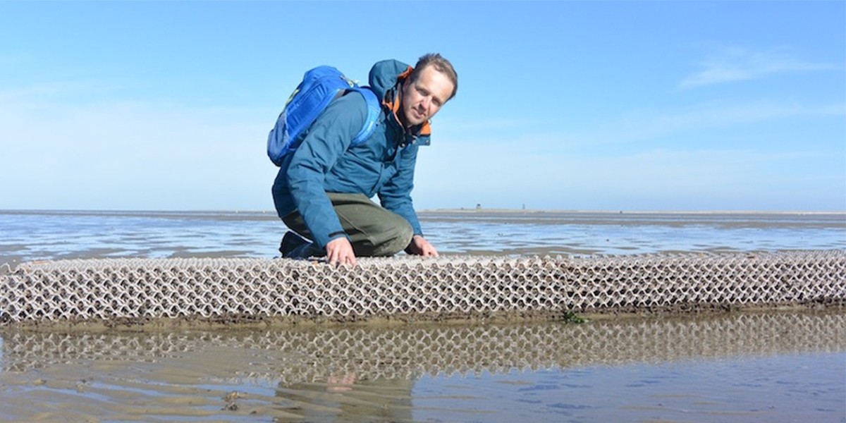 Ecosystem engineers are not only important from an ecological perspective, given that humans are definitely amongst the many species that profit from the landscapes they build. Coastal ecosystem engineers provide important ‘ecosystem services’. Their landscapes, for instance, offer protection against flooding during storms, decreasing the impact on man-made defences such as dikes, while simultaneously serving as carbon sinks, and as foraging and nursery areas for commercially important species. Because of their great ecological and societal relevance, we are therefore not only trying to elucidate how they function, but also figure out how we can restore lost or degraded ecosystems. To achieve this, we are developing biodegradable establishment structures that temporarily mimic the landscape modifying traits of ecosystem engineers, allowing the actual species to establish and take over as the structures naturally degrade’.