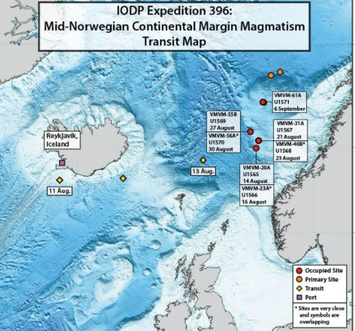 Secondary objectives relate to the onset of the meridional overturning circulation in the North Atlantic Gateway and the potential to use the breakup basalt province to store CO2 on industrial scales. To this end, Expedition 396 will attempt to drill nine boreholes on the Vøring and Møre margins. They will target the breakup volcanic successions as well as the overlying postrift sediments and the underlying synrift sediments. In conjunction with the wealth of reflection seismic data collected by the hydrocarbon industry during the past 40 years, the new borehole information will provide an unprecedented picture of the formation of a large igneous province during the opening of an ocean basin.