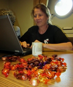 's Ochtends om 7 uur bij het ontbijt, vraag ik me dus nog maar eens af wat ik hier doe. We werken veel. Ik heb 3 boeken bij me maar nog geen enkele tijd voor gehad. Werken op zee. Het begint langzaam te wennen. Er is van alles op aan te merken, maar toch. Ergens, onder de streep, is het netto resultaat overweldigend positief. Geen idee waar alle plussen staan, maar ik ga elke nacht slapen met een grote glimlach. Behalve als het stormt. Dan lach ik wel maar slaap ik niet.