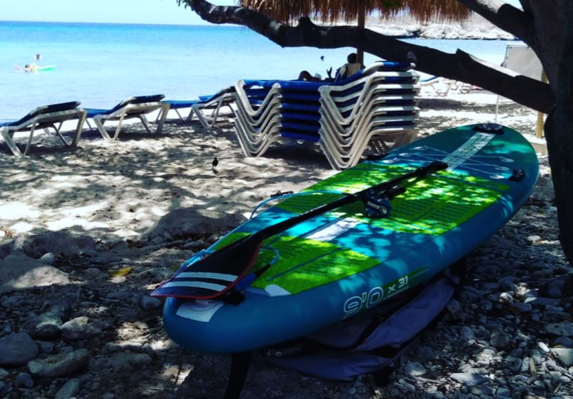 We used an inflatable Stand Up Paddleboard (SUP) as vehicle. SUPs allow for a slow and smooth cruising over extremely shallow areas covered by corals.
