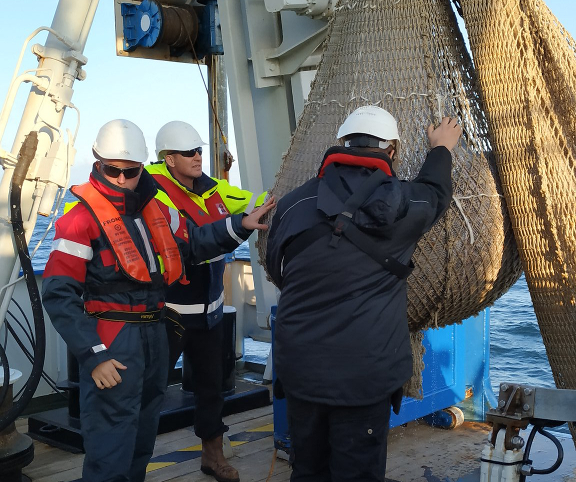 Na vele dagen voorbereidingen is het moment eindelijke daar. We verlaten de NIOZ haven op Texel met de Pelagia en enkele uren later kunnen we dan de eerste schaaftrek doen. Als eerste bemonsteren we die plekken die intensief gebruikt werden door onze gezenderde zeehonden. Het is natuurlijk ontzettend spannend om eindelijk eens te zien welke bodemgemeenschappen zeehonden selecteren en wat ze daar aantreffen. Zit er inderdaad zandspiering in? Of komen er hele andere visgemeenschappen voor? Als de vangst wordt uitgestort, komt daar het verlossende antwoord; tussen het zand en schelpengruis zien we de langgerekte zilverkleurige vissen verschijnen: zandspiering!