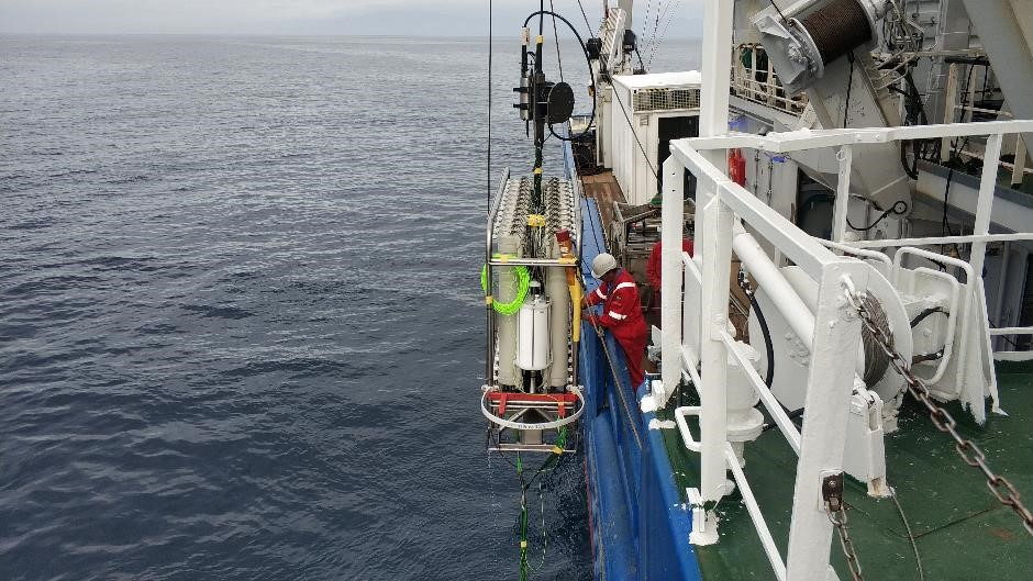 The final day we pushed to the limit and we tried to make the near bottom sampler move by letting the ship drift and we challenged the sampler design by blocking the sample inlet. This first test was to determine how much surface movement of the ship is acceptable during deployment, but even after more than 80 m drift of the ship, the near bottom sampler had not moved. This is excellent as this is much more drift than would occur during normal deployments and this result exceeded expectations. The second test was to check if it was possible for water to bypass the sample inlet and filter and seep via other ways. This was indeed the case and thus means there are some minor improvements to be made for version 2.0 of these samplers. This is surely something we can handle and we fully expected the need to adjust the initial design.