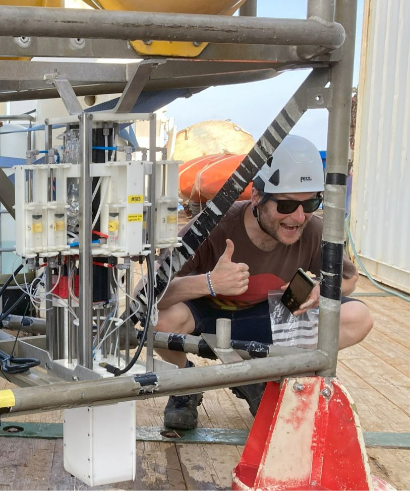 We take all those precautions to preserve our sediment samples but don’t know yet at which depth oxygen is actually used up during e.g. metabolic processes by microorganisms. Thankfully we have a special oxygen sensor onboard that can measure the oxygen concentration in the sediment and we can try to find the depth at which oxygen is not present anymore. However, we could not find this point so far as it appears to be much deeper than our sensor can go. So, the search for the 0% oxygen concentration point in the sediment will be continued.