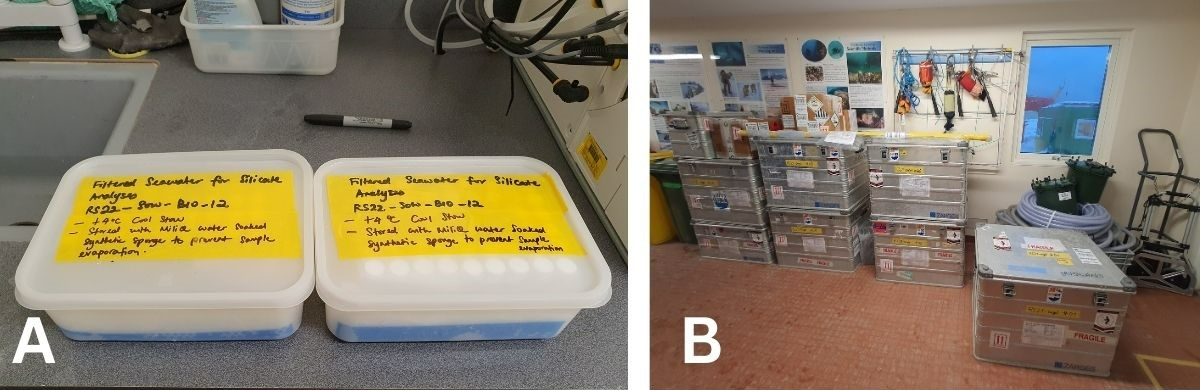 Samples (A) and cargo (B) packed, ready for the journey home (C) The SDA being loaded up with cargo. Photos: Swan Sow