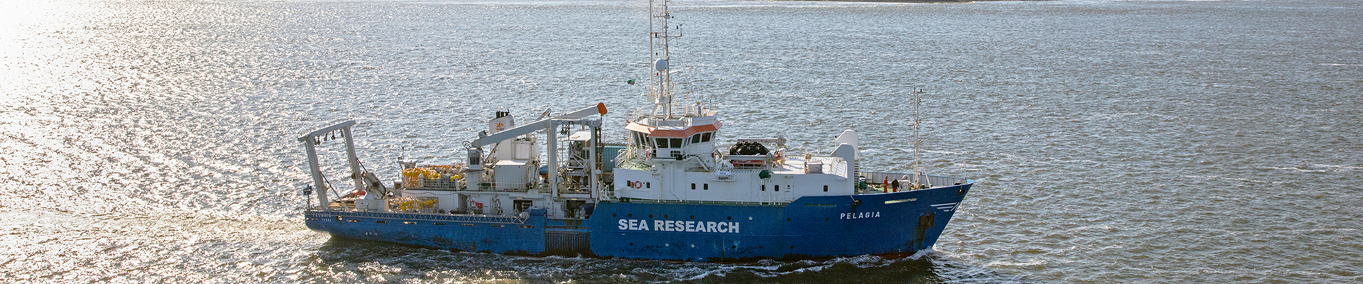 Het Research Vessel RV Pelagia is niet voor niets vernoemd naar ‘pelagisch’, dus ‘horend tot de diepzee’. Het schip van 66 meter lengte is helemaal ingericht op onderzoekswerk op om het even welke oceaan. Alleen de Poolzeeën met hun pakijs zijn zonder hulp van ijsbrekers onbereikbaar voor dit schip.