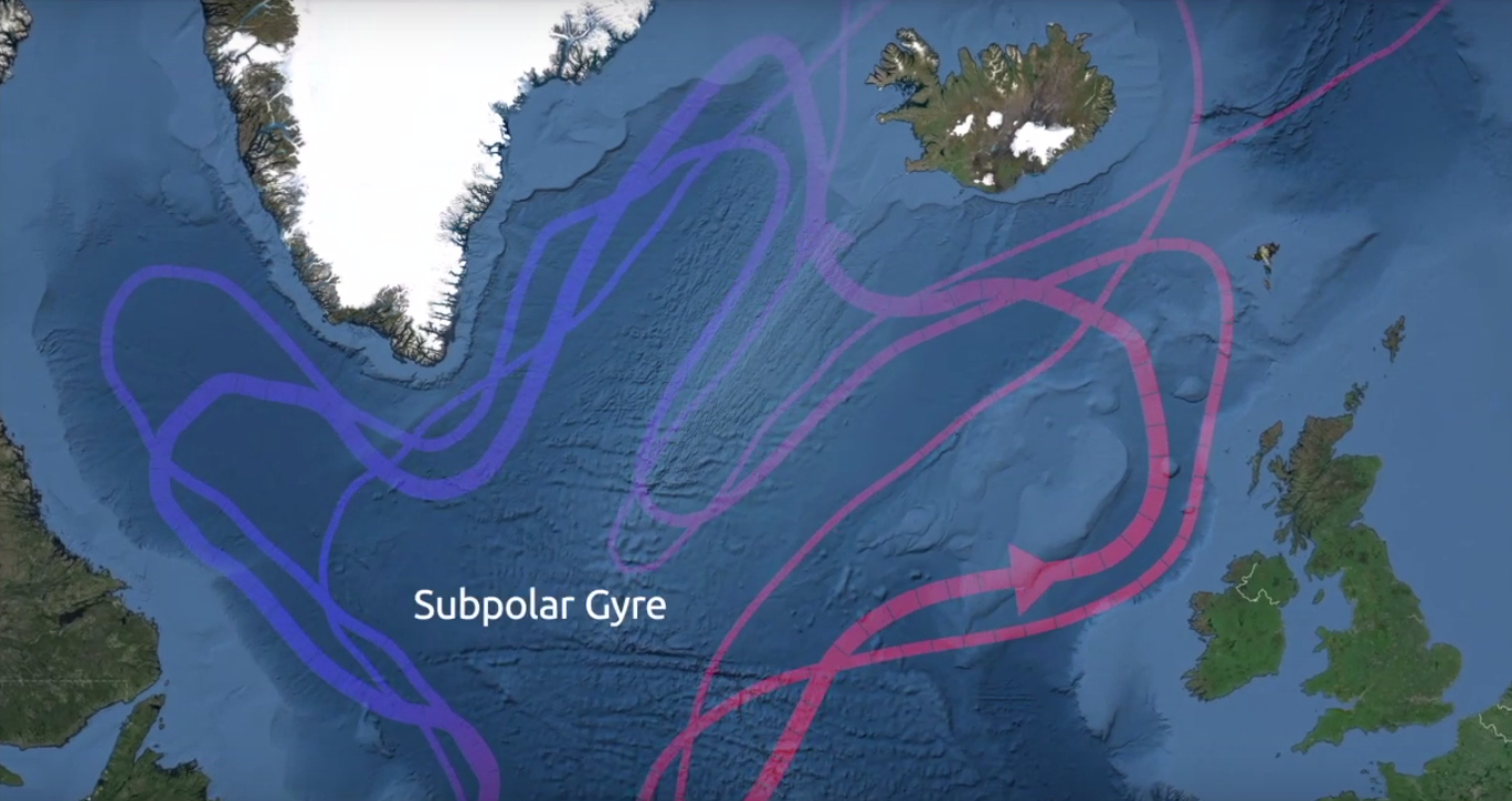 ‘Ook al zijn de plekken en de richting van de grote oceaanstromingen al heel lang bekend, we weten nog maar weinig over hoe ze veranderen. Onder andere met hulp van instrumenten aan kilometerslange kabels, overeind gehouden door boeien en verankerd aan de zeebodem met een zwaar gewicht, houden we dag in dag uit de temperatuur en de stromingsrichting van het water in het noordelijke deel van de Atlantische Oceaan in de gaten. Subtiele veranderingen door bijvoorbeeld meer smeltend ijs rond de Noordpool, kunnen grote gevolgen hebben voor ons klimaat.’