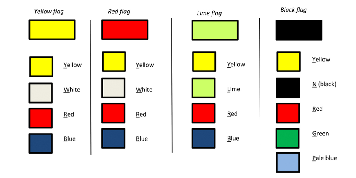 You can here find a description of the colour-ring scheme used on