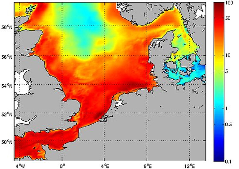 The model does not explicitly simulate pelagic or benthic fish. However it is possible to estimate how much food is available for the higher trophic levels. This is done by making use of the “predation closure” in the model. In our model carnivorous zooplankton represents the highest trophic level in the water column and infaunal predators in the sediment. In order to constrain these predators to a realistic range of observations, we have defined density-dependent loss processes which regulate their abundance. These processes form the closure of the model and are self-regulating: density-dependent mortality and grazing by the top-predators on themselves. We then calculate the total loss of these processes in the pelagic as well as in the benthic, and assume that these losses are a measure for the food available to the higher trophic levels.