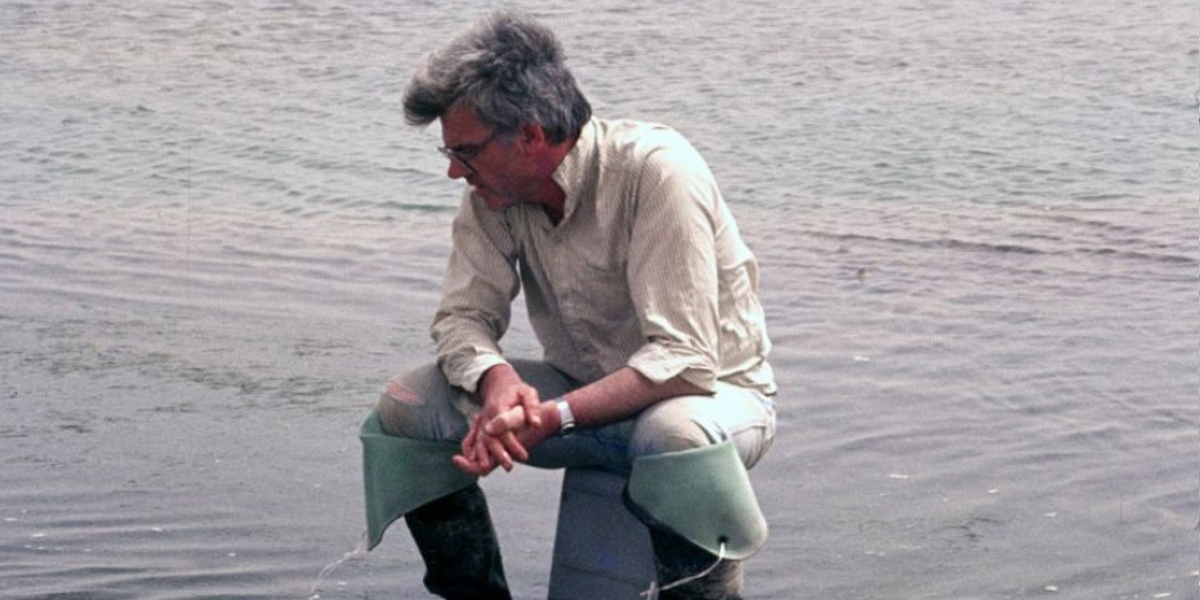 Wim Wolff bestudeert hoe bodemdieren een wadplaat opzwemmen tijdens opkomend water.
