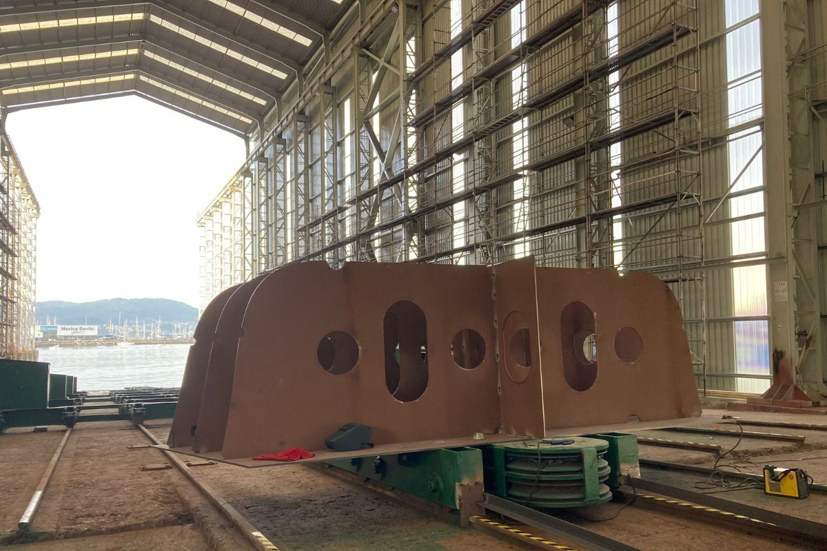The day before, on 10 October 2023, the first steel plates for the hull were cut at a different location of Armon Shipyards and transported to Vigo for the ceremony.