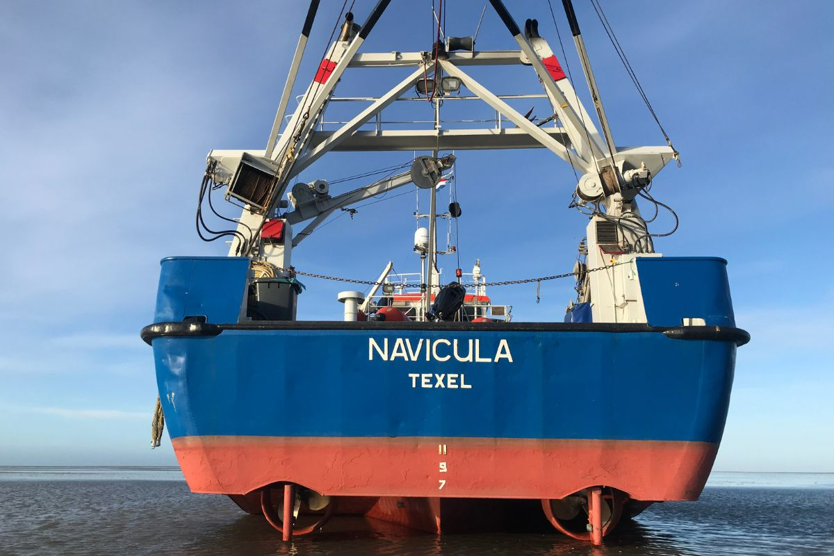 On the other hand, they have also been in places that were too shallow, even for the Navicula. Van der Veer: "We once sailed backwards across the mud flats. This made the ship 10 cm more shallow because the propeller pushed the water under the ship. That way you could get further."
