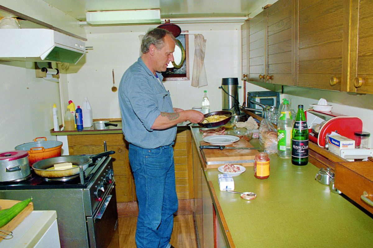 By the time Hein de Vries came to work on the Navicula as cook in 2002, the ship had been in operation for 20 years. Skipper Bram Fey started in 2011. With machinist Klaas-Jan Daalder, they have formed the current permanent crew on the ship since 2012. Fey and De Vries praise the in-house culture on the Navicula. "Ever since the beginning, I have been baking pancakes every morning," says De Vries. "I start doing that at a quarter past six. And every Wednesday I make an Indian rice table ‘de Blauwe Hap’."