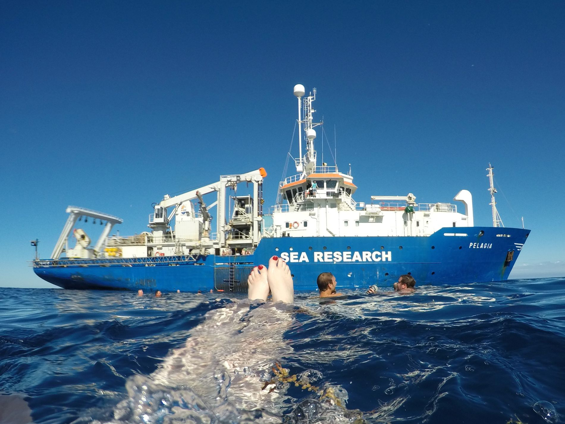 ‘Zwemmen met meer dan 4000 meter water onder me blijft een unieke ervaring’, schrijft Sharyn Ossebaar, die als analist in een laboratoriumcontainer aan boord voor vele wetenschappers nutriëntenonderzoek doet in watermonsters. Senior-zeetechnicus Jan Dirk de Visser die in zestien jaar zo’n vijftig keer meevoer voor technische ondersteuning van de wetenschap: ‘Een van mijn mooiste Pelagia-herinneringen is dat we ‘s morgens bij een ijsveld lagen bij Groenland. Kleine ijsschotsjes dreven voorbij terwijl we watermonsters aan het nemen waren. Het weer was grauw en grijs. Toen we ‘s middags naar het volgende station voeren, brak de zon door en zagen we een groep orka's zwemmen.’