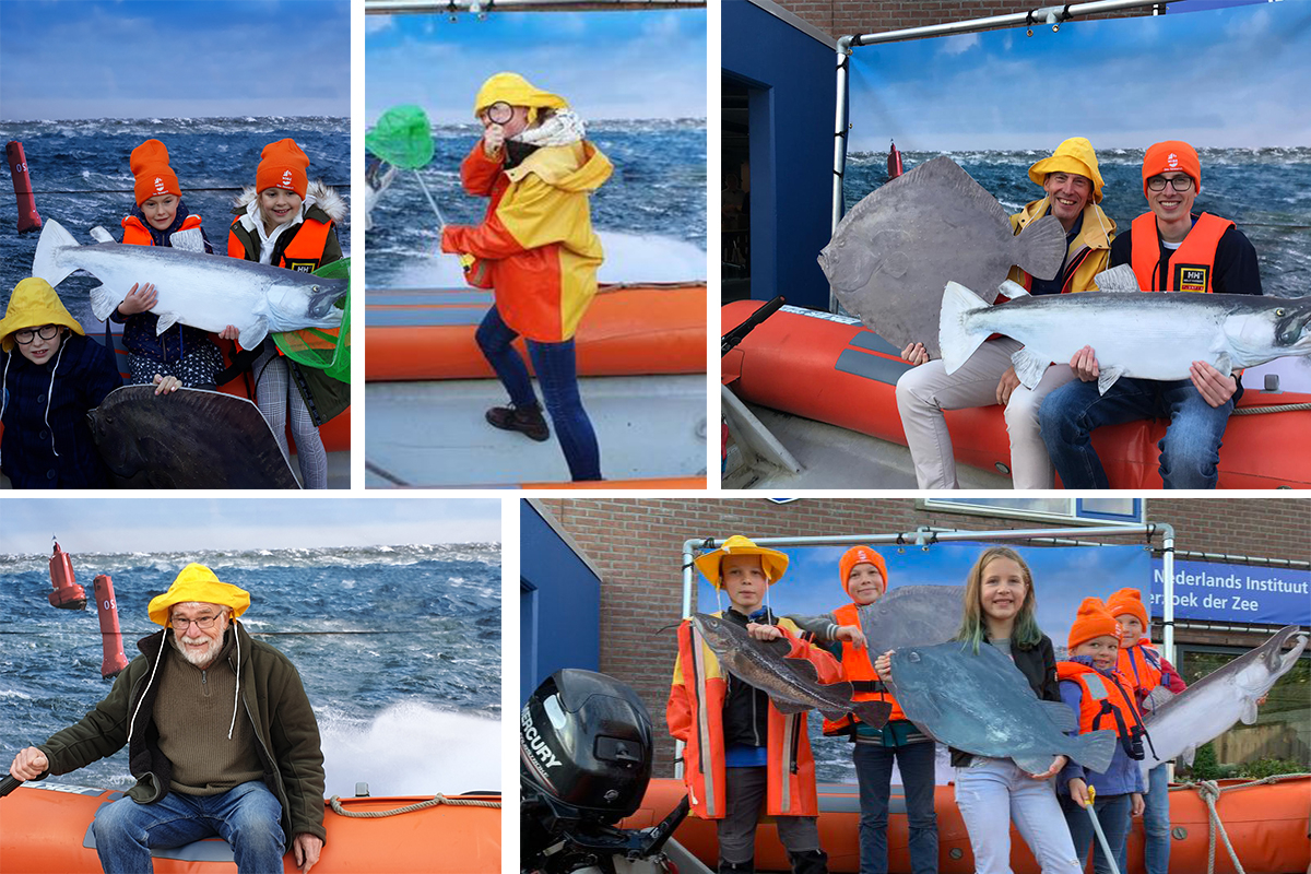 Op het entreeplein kon je jezelf als zeeonderzoeker fotograferen. De leukste gedeelde foto is inmiddels uitgekozen, ook dit gezin mag mee met een Waddenzeetochtje met het NIOZ schip Stern.