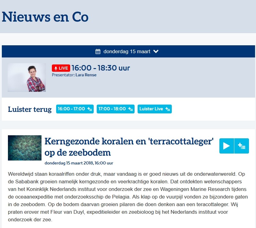 De NICO-expeditie (Netherlands Initiative Changing Oceans) is een wetenschappelijke vaartocht waaraan 100 onderzoekers van 20 organisaties deelnemen. Uniek aan de expeditie is het multidisciplinaire karakter. De 7 maanden durende expeditie vaart vanuit de Caribische Zee, via de Mississippi delta en Ierland terug naar Texel in Nederland en duurt nog tot eind juli 2018. Tijdens de tocht varen onder andere geologen, zeebiologen, ecologen en oceanografen mee die onder meer onderzoeksvragen hebben opgepakt uit de Oceanennotitie die de Rijksministerraad vorig jaar heeft goedgekeurd. Meer lezen over de expeditie? www.nico-expeditie.nl