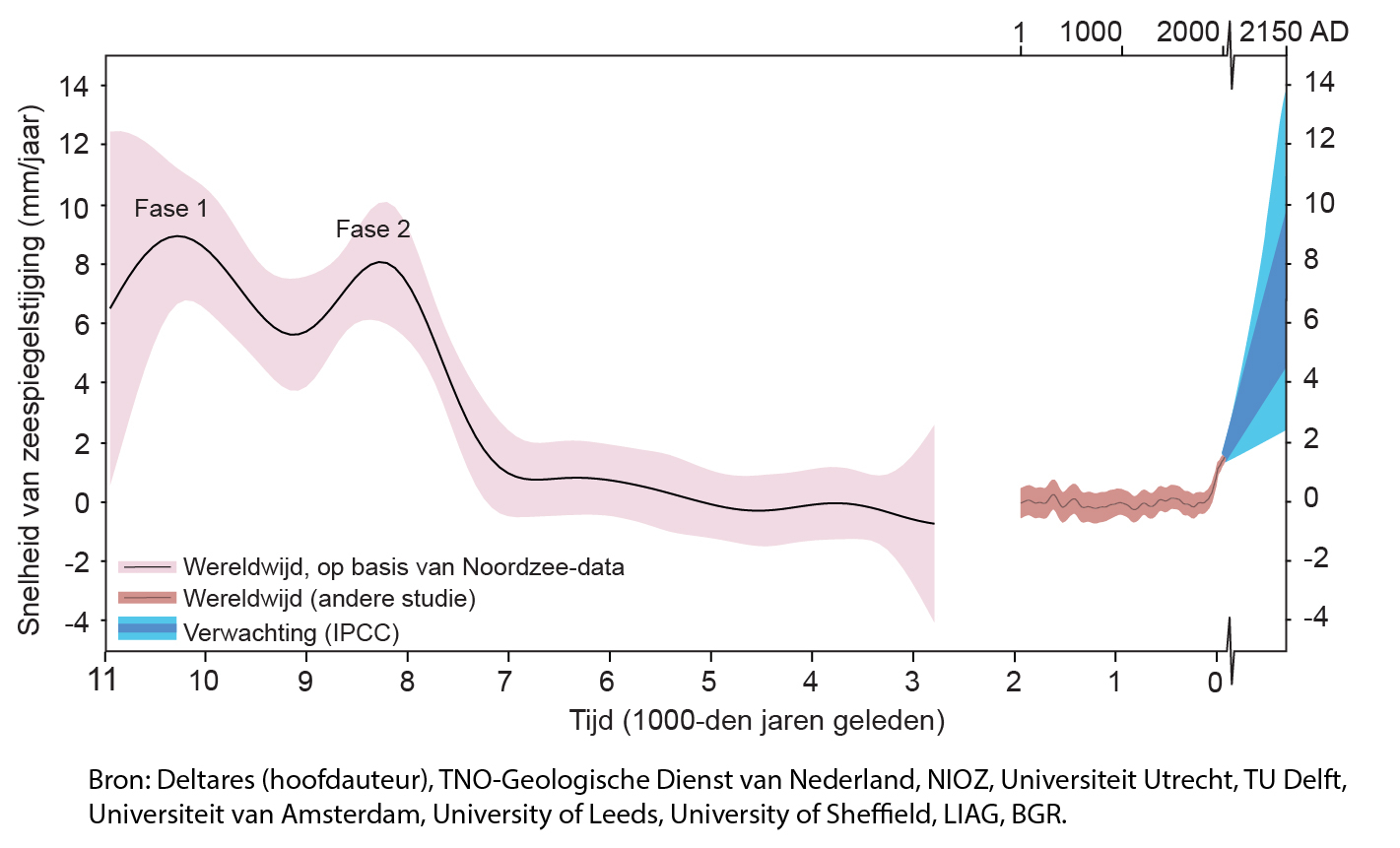 Dankzij nieuwe geologische gegevens is er nu meer bekend over hoe snel en hoeveel de wereldwijde zeespiegel steeg na de laatste ijstijd, zo’n 11.700 jaar geleden. Deze informatie is van groot belang voor het huidige begrip van de impact van opwarming op ijskappen en daarmee op zeespiegelstijging. Onderzoekers van Deltares, Universiteit Utrecht, TNO-Geologische Dienst van Nederland, TU Delft, NIOZ en Universiteit van Amsterdam publiceerden hierover in het tijdschrift Nature.