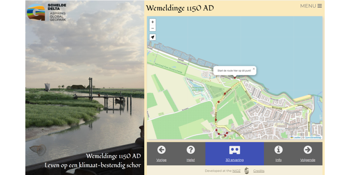 “Door deze route en de 3D beelden wordt op eigentijdse wijze een inkijk in het verleden van Wemeldinge en van het landschap gegeven” zegt Walter Jonkers, coördinator van het aspirant UNESCO Geopark Schelde Delta. “Hoe de wisselwerking van geologische processen en menselijk handelen het Zeeuwse landschap heeft gevormd, dat is een centraal thema van het Geopark. Als je de 3D-beelden tijdens de route bekijkt, val je echt van de ene verbazing in de andere. Onvoorstelbaar dat onze verre voorouders op deze wijze in dit gebied leefden dat zo anders was dan nu!“