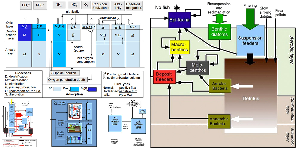 The ERSEM model was applied to several European regional seas, to the whole Mediterranean, directly coupled to hydrodynamicmodels (PML application for the Western Shelf Seas, to the Adriatic sea to the global ocean model. The impossibility to get funding for an organization responsible for 'a standard version' and the consequent lack of coordination between these follow-on projects has lead to a number of different flavors/versions of ERSEM. The ERSEM-GETM version was set-up initially to quickly develop an in-house modelling capability in CEFAS. The objective was to have an ecosystem model coupled with a sophisticated hydrodynamical model which is able to reproduce especially the processes in the shallow coastal regions of the North Sea and which may be used to study benthic-pelagic coupling, first and foremost in the Southern North Sea.