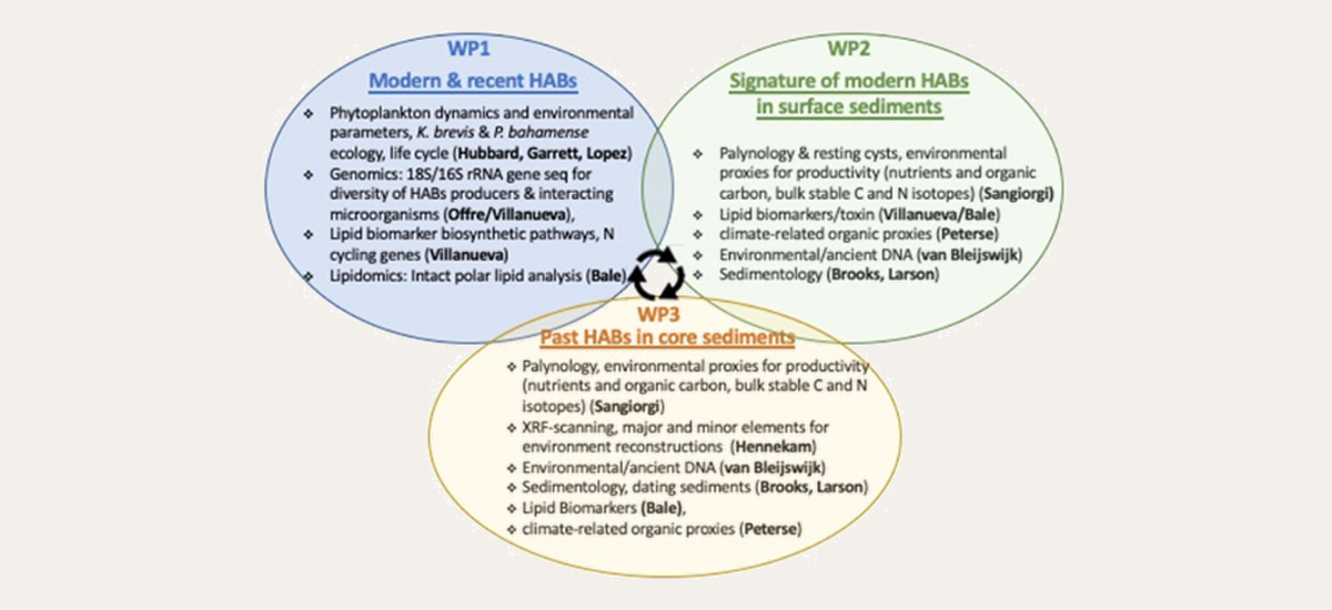 - WP3 focuses on past HABs, and environmental/climate conditions to identify the baseline of natural HAB occurrence and variability against which modern trends can be compared. We target Holocene at low resolution to account for climate variability11, and focus on the last 1000 years for matching the time scale of human impact. The data will be shared with modelers (in Florida) for future HABs forecasting. All data will be made open access.
